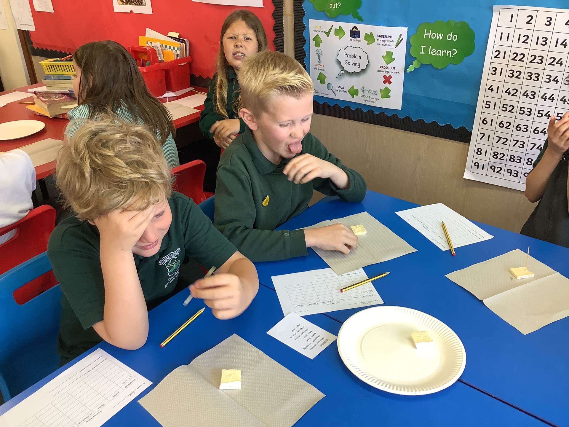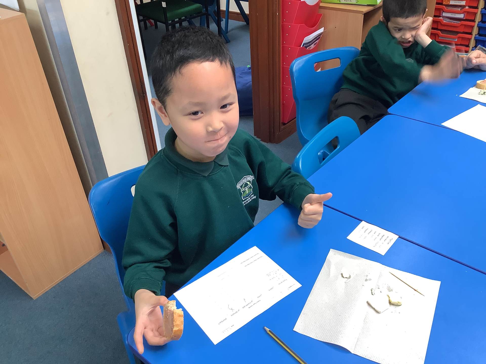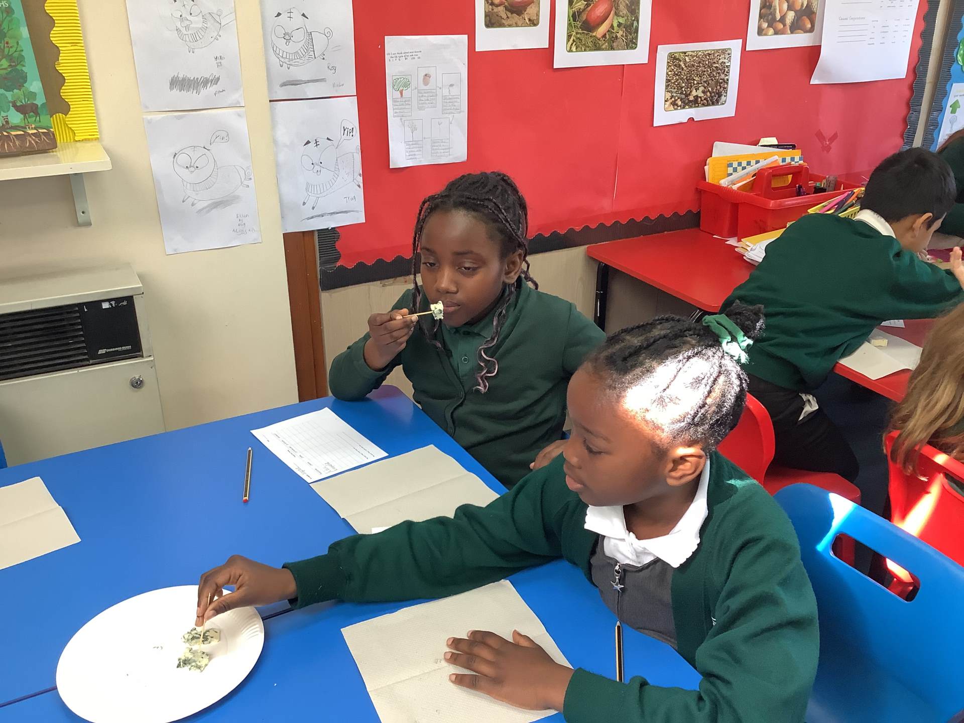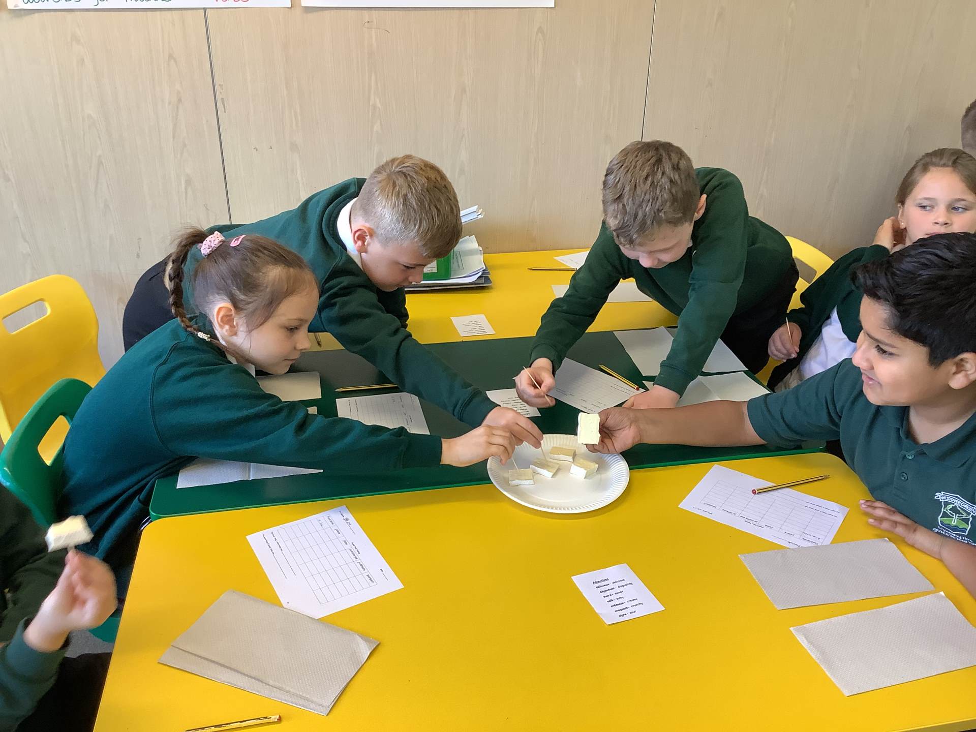 As part of our topic on 'Healthy Living', Year 3 have been learning the vocabulary for different foods. We finished the topic by tasting some authentic French foods: brie, roquefort, cornichons, pâté on baguette, madeleines and grenadine. We also learnt a little bit about each food we tried. Children tried foods that they hadn't before and some foods were more popular than others!