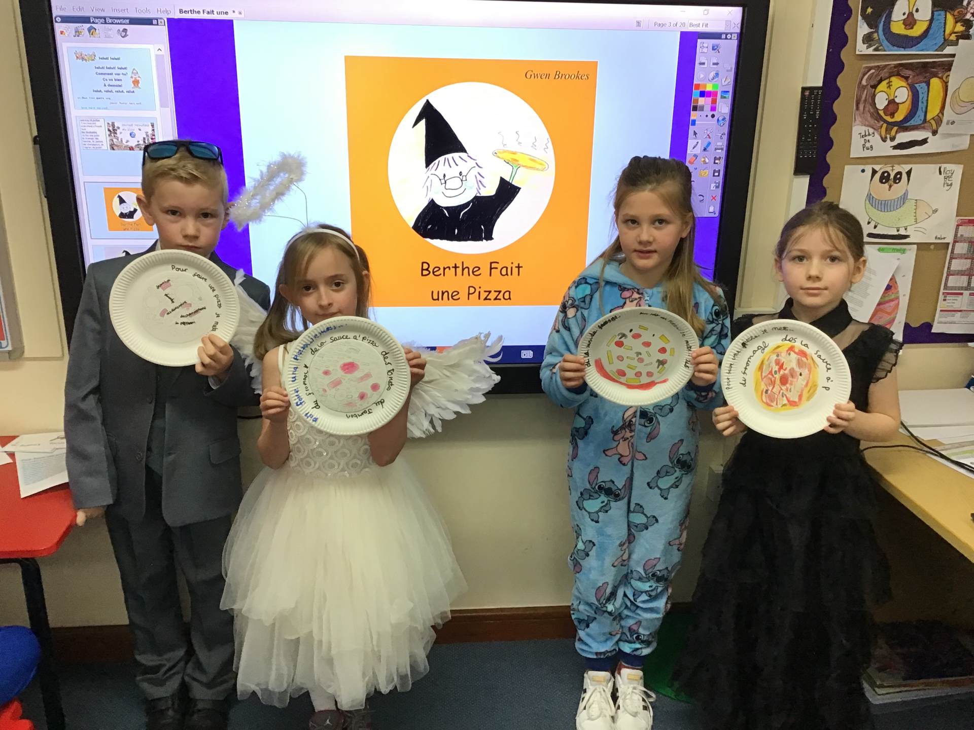 Year 3 read the book about Berthe making a pizza and then designed their own pizza and labelled it in French. Year 5 read the book about Berthe going to the supermarket and then played a memory game to collect the items on their shopping list.